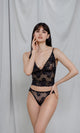 Thong panties, the essence of subtle elegance and absolute comfort. Made of fine lace, with a delightful floral pattern, they offer a smooth wearing experience, without seams that cause discomfort or irritation. Their specially designed design accentuates the silhouette, highlighting curves with delicacy and refinement. It is the perfect piece to combine with a matching top from our collection, to create an attractive and harmonious ensemble.