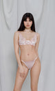 Refresh your intimate wardrobe with these refined thong panties, which captivate with their handcrafted embroidery in shades of rose. They feature a seductive design with a delicate logo placed on a transparent mesh, which promises to add a touch of sophistication to your look. The carefully executed details and the mesh back panel offer a perfect balance between aesthetics and comfort.