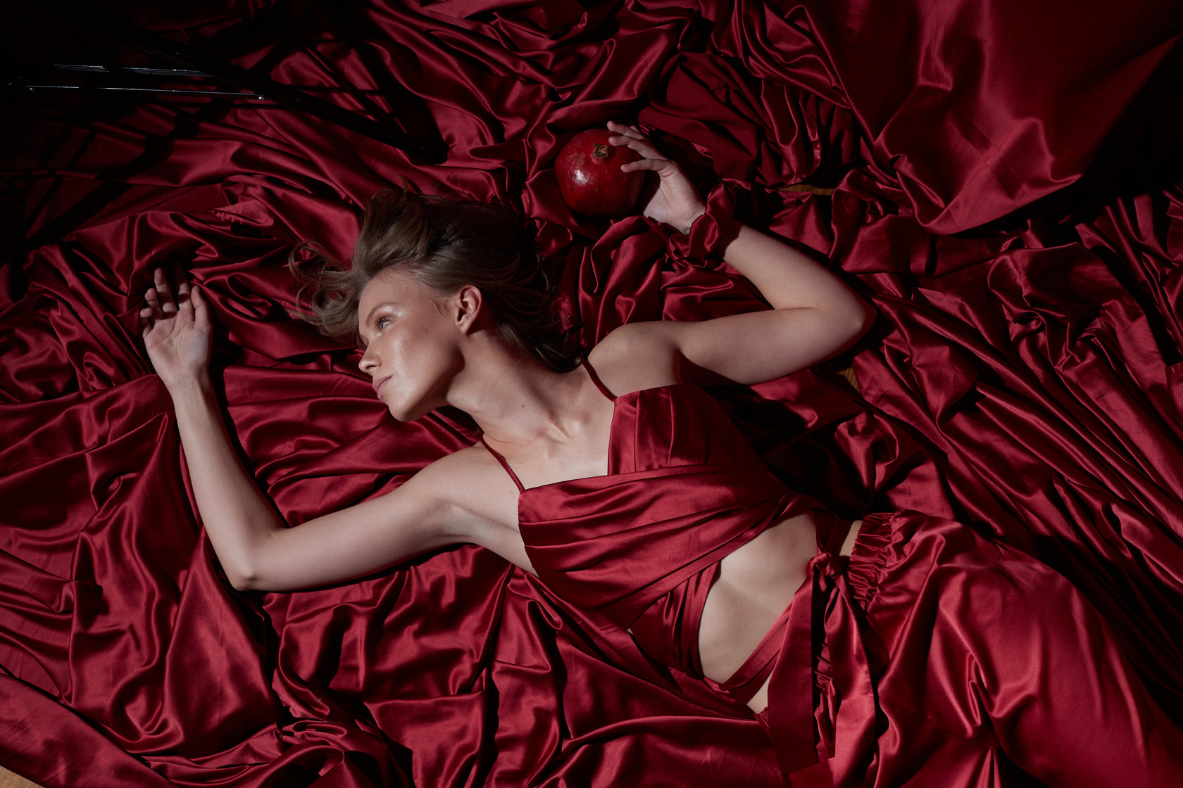 Body in burgundy satin