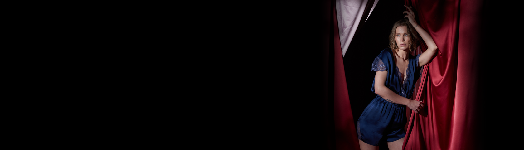 Long black satin dress with lace