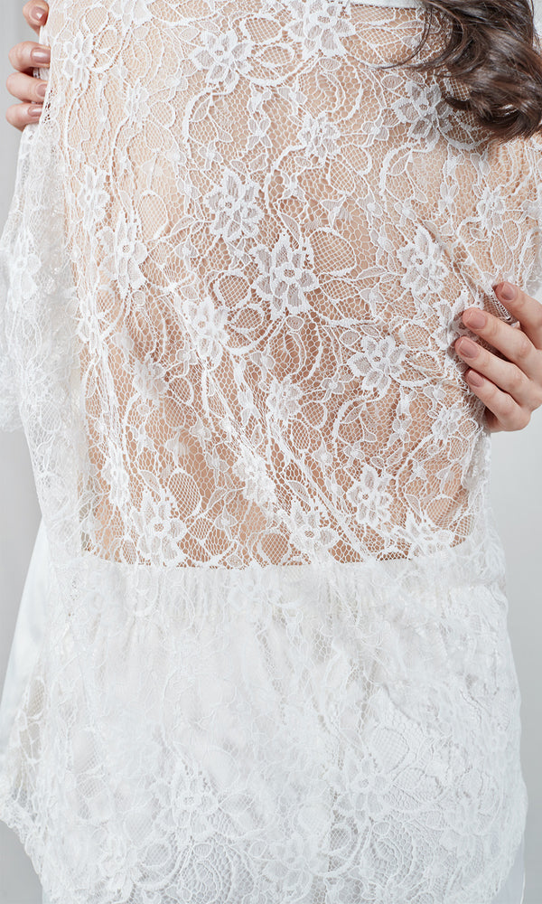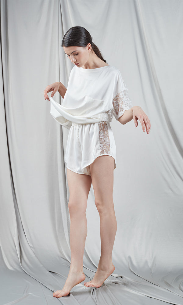 Ivory satin t-shirt with lace
