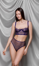 Slip elegant cu o talie înaltă și confortabilă, confecționat din dantelă indigo flexibilă și plasă fină, având un design floral atractiv care îmbină stilul clasic cu elemente moderne. Oferă o acoperire completă, menținându-se senzual datorită spatele din plasă transparentă. Bandă elastică a taliei asigură o potrivire sigură și personalizată, făcând acest slip ideal pentru fiecare zi, adăugând o notă de grație oricărei ținute.