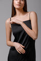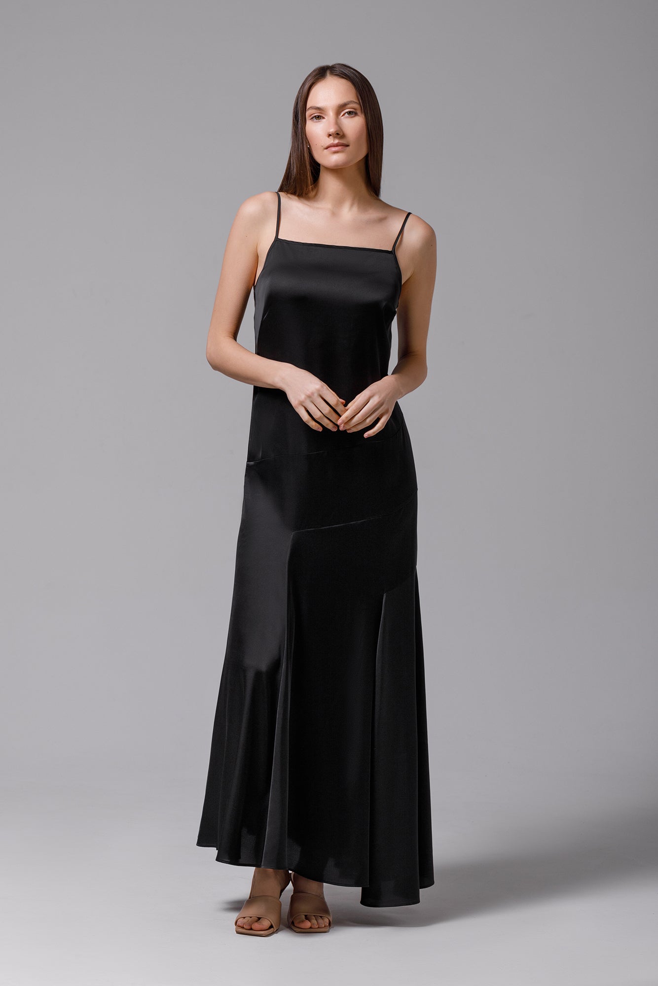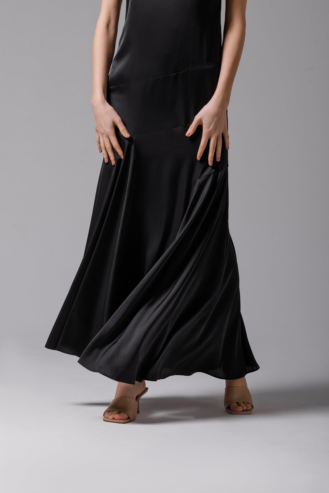 Satin de lux, tăiată în diagonală, care se așează frumos pe corpul tău.