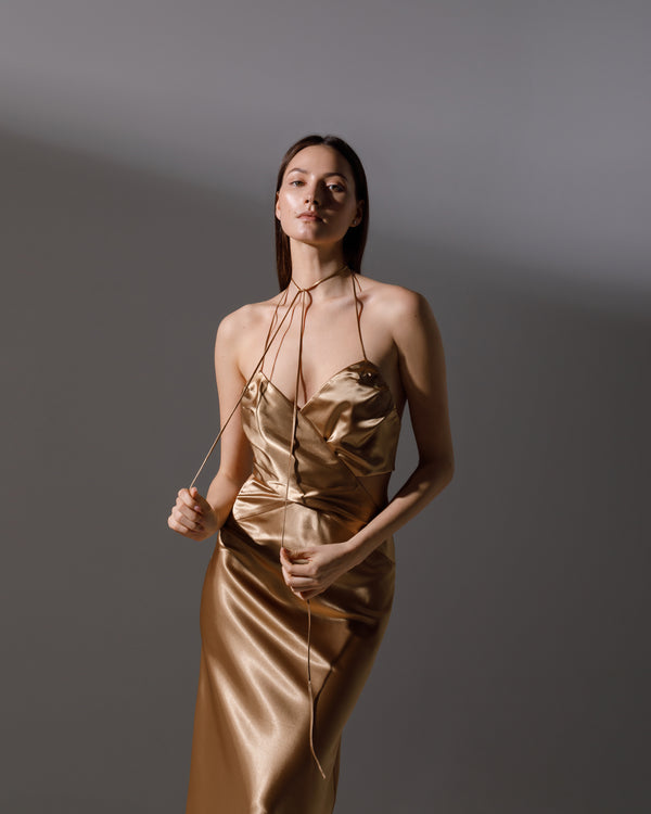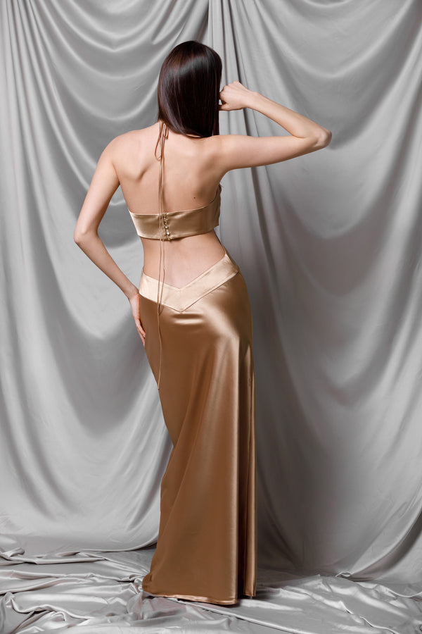 Rochie lungă din satin champagne