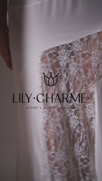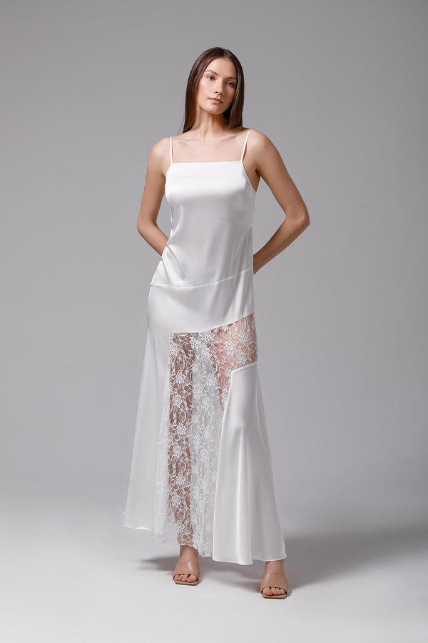 Rochie lungă Slip din Satin și Dantelă Ivory