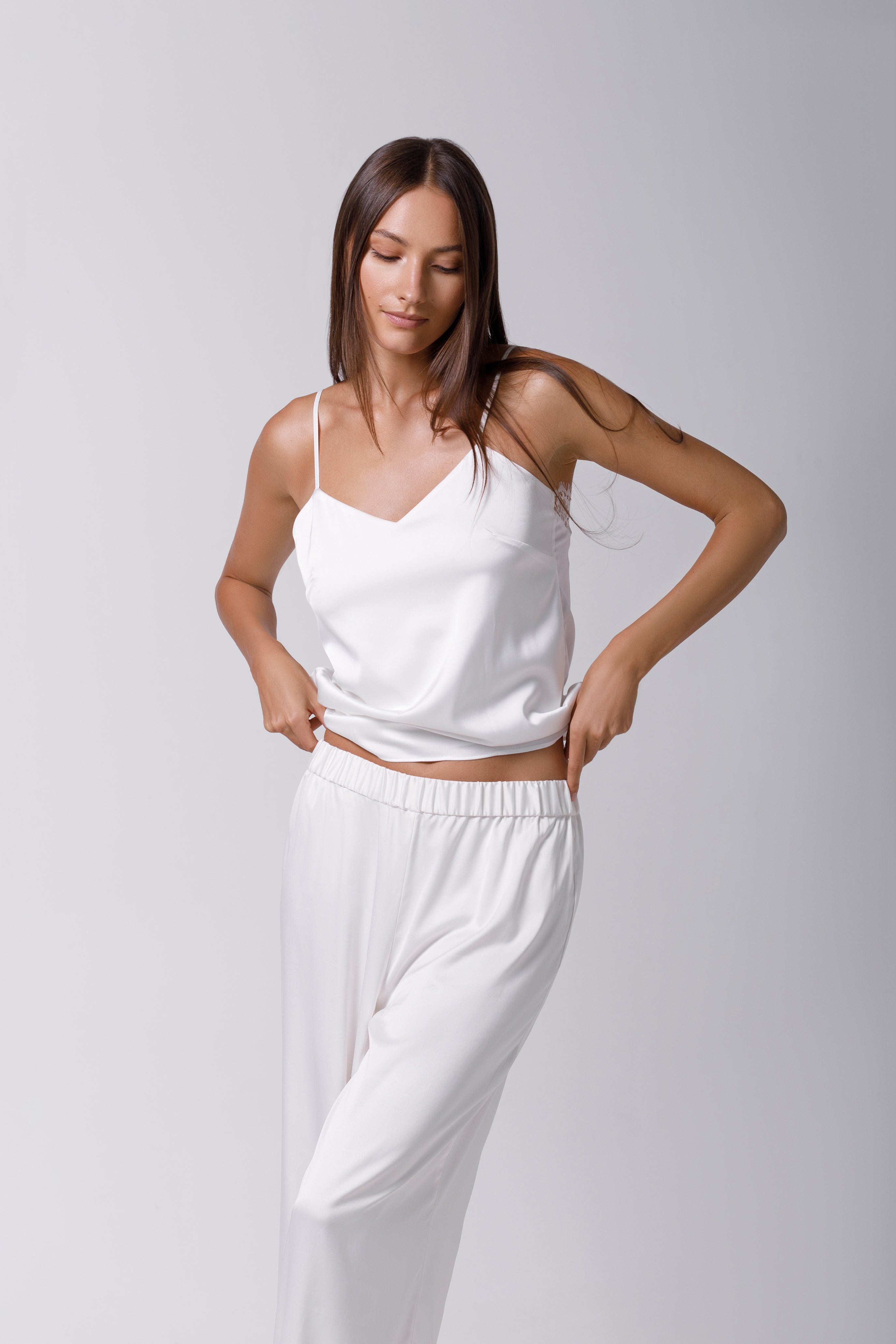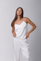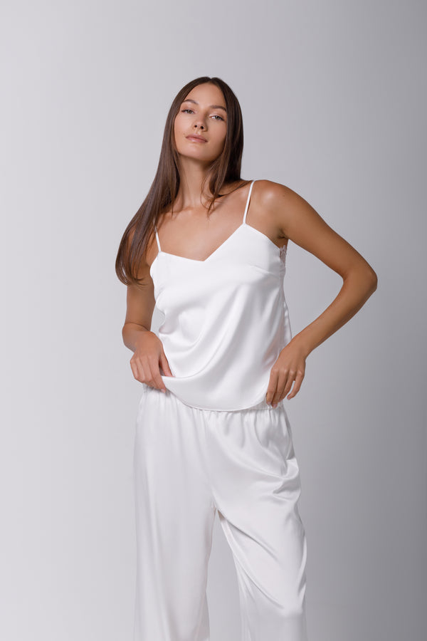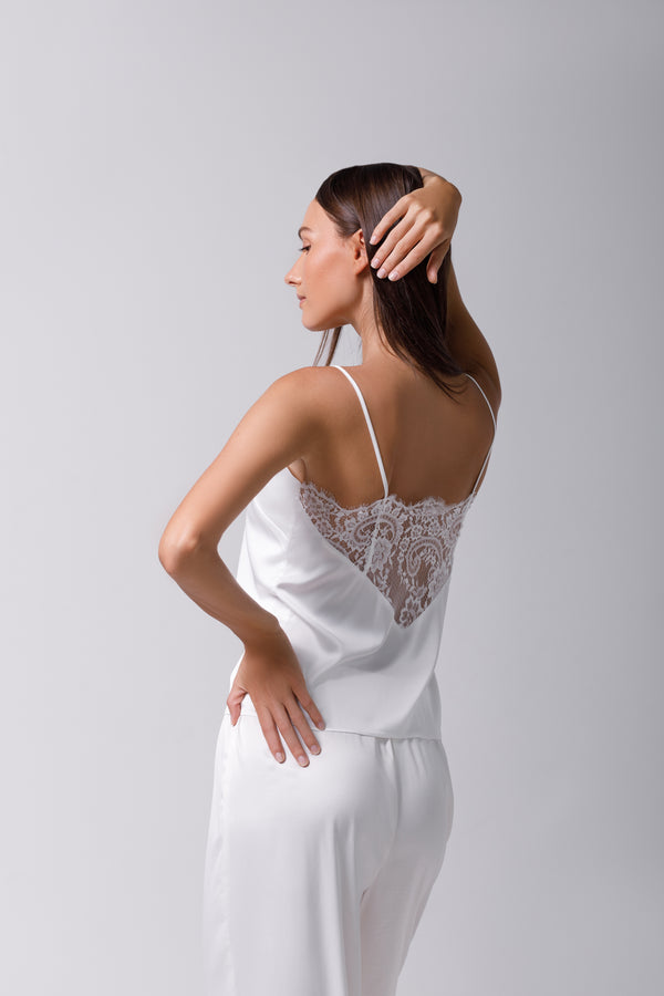 Top din satin ivory si dantelă