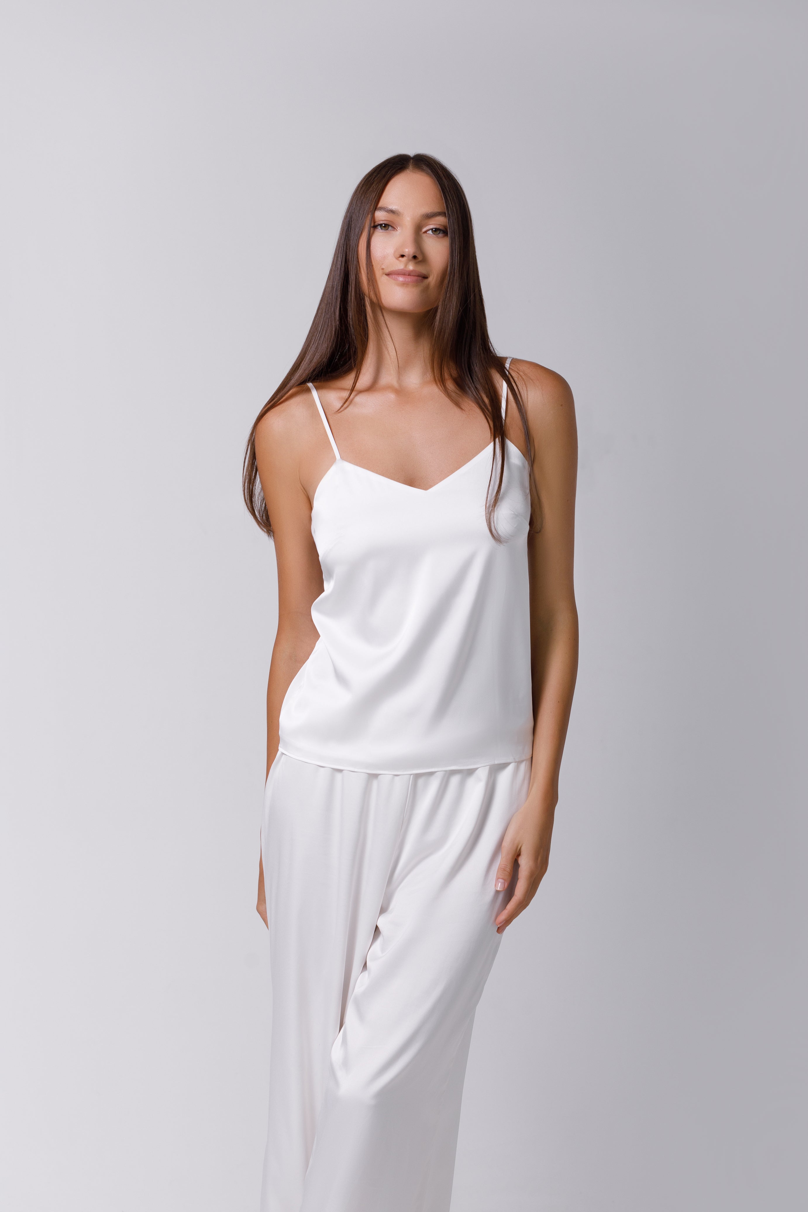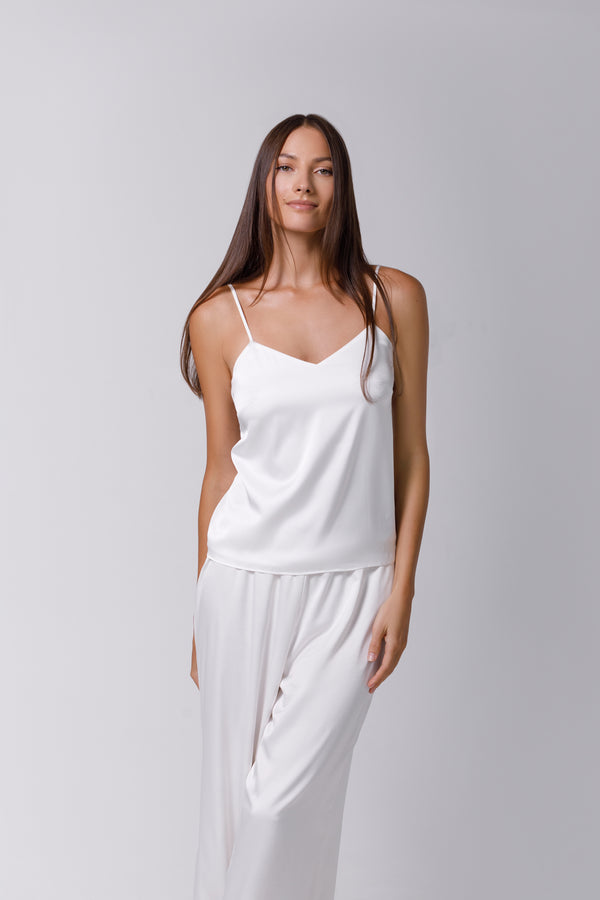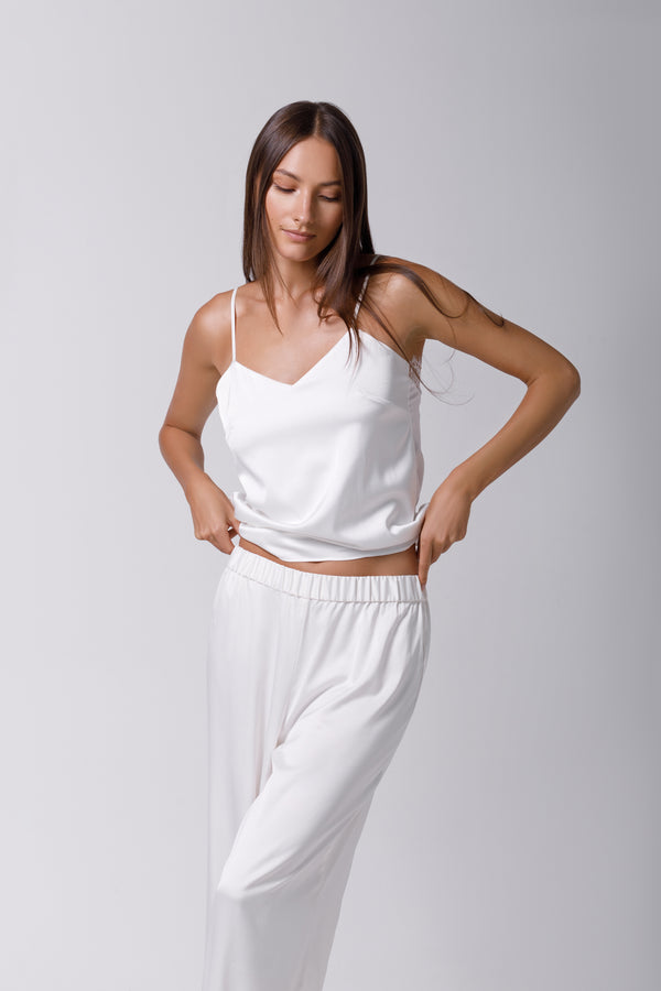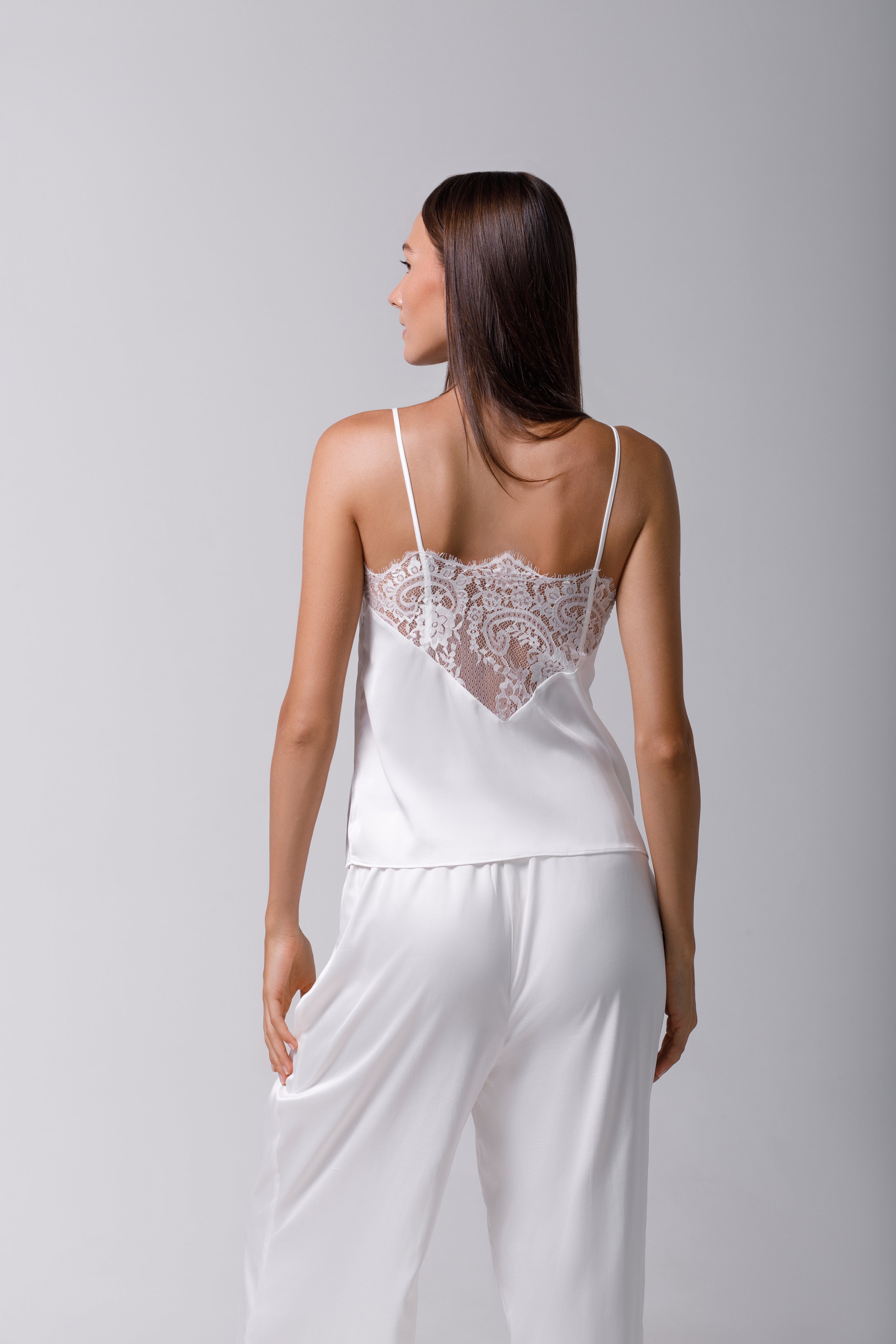 Această piesă extrem de moale oferă o plăcere deosebită la purtare, fiind ideală atât pentru somn, cât și pentru a adăuga un aer sofisticat în timpul zilei. Topul reprezintă combinația perfectă între eleganță și confort, având un spate deosebit, decorat cu dantelă delicată care adaugă un plus de rafinament. Poate fi asortat cu pijamale coordonate sau folosit cu versatilitate: poartă-l peste tricouri, pe cont propriu, sau stilizează-l în diverse combinații casual și formale.