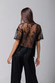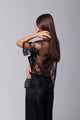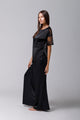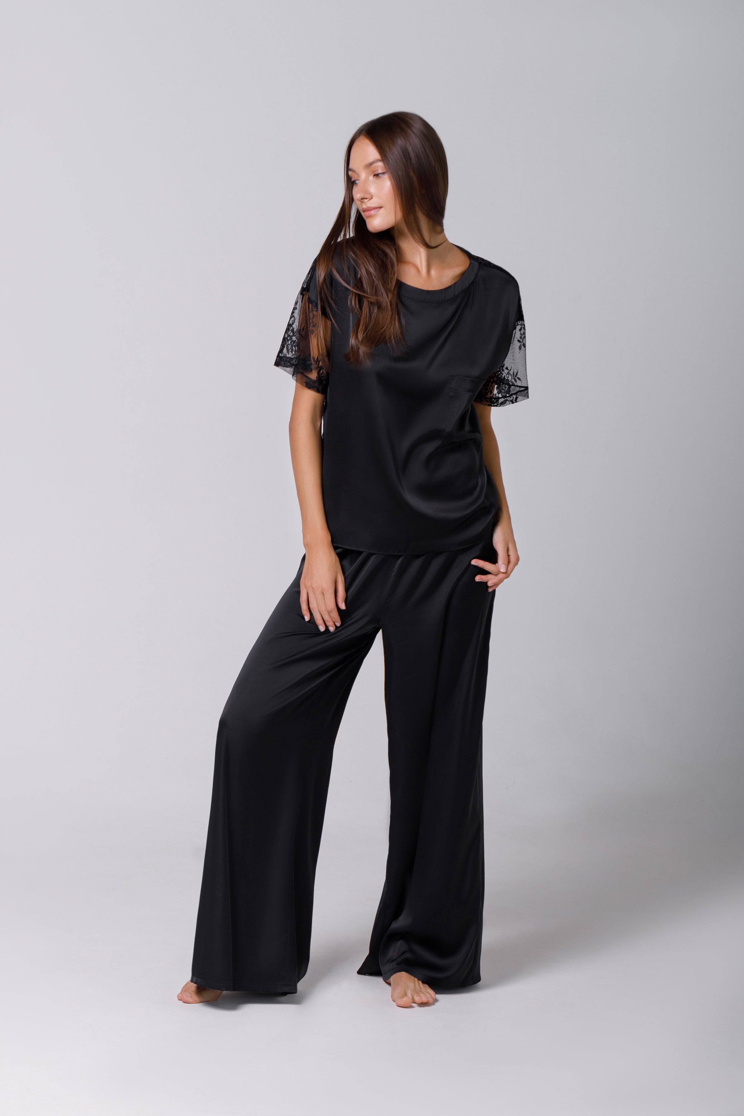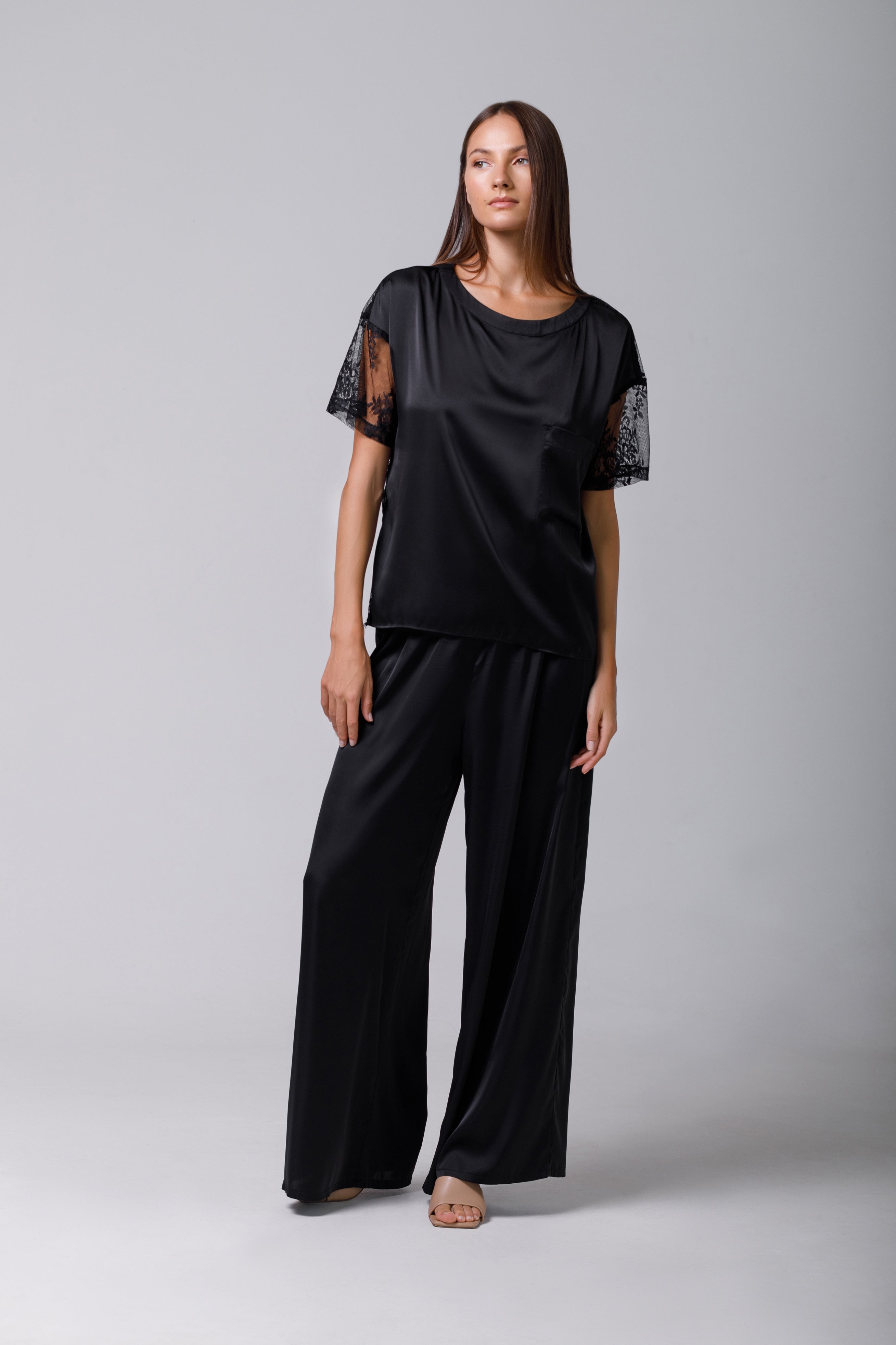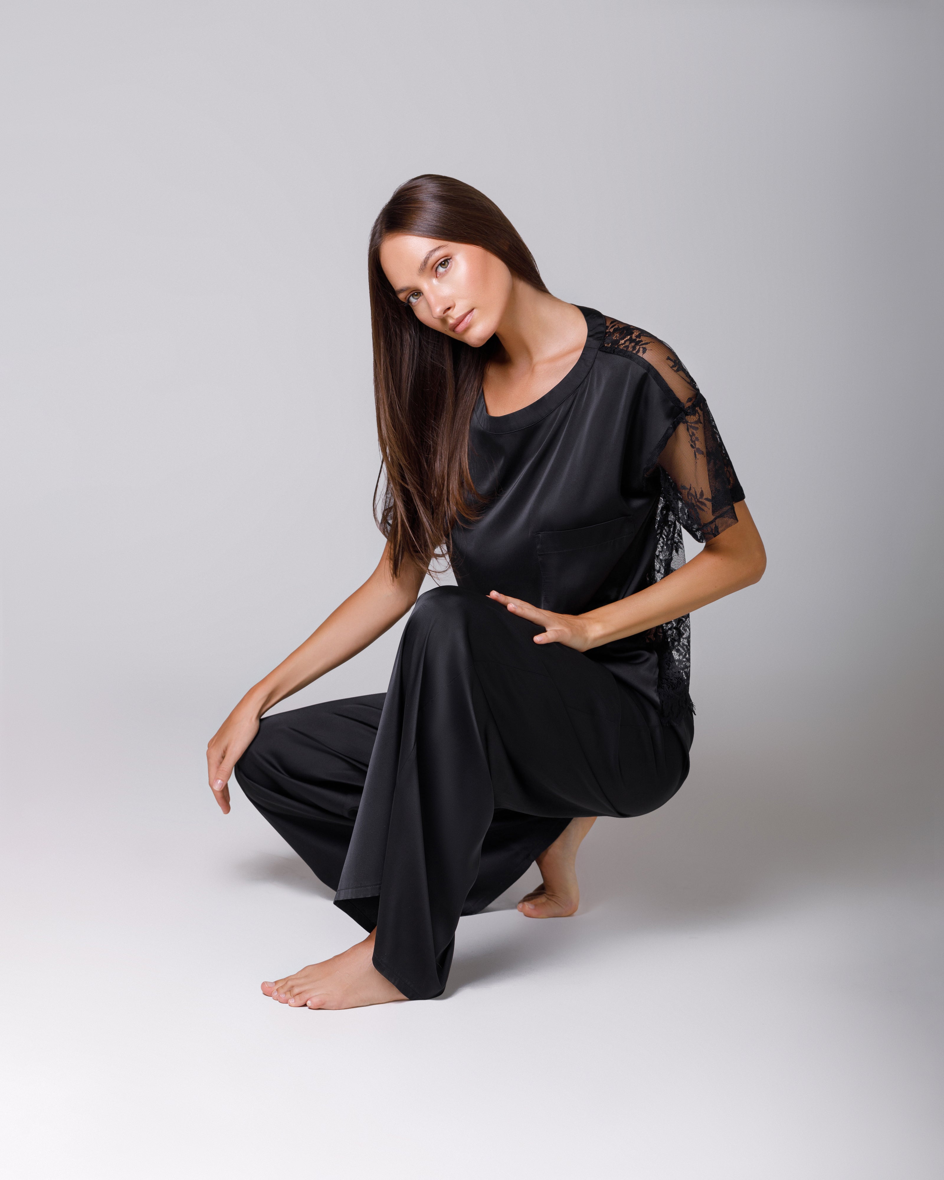 Tricou din satin negru cu dantelă